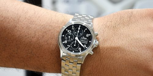 下の写真は1960年代に誕生したモデル103の手巻き式クロノグラフで、現行モデルとの違いは回転ベゼルのデザイン、リュウズガードがない、曜日表示がない、またSinnロゴの書体も若干異なりますが、基本コンセプトやデザインは現在も当時とまったく同じです。スタンダードモデルだからこそ長い製品生命を保つことができるのです。