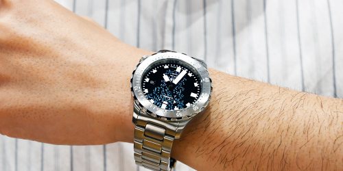 サテン仕上げのケースにドーム型の両面無反射サファイアクリスタル製の風防と、裏蓋にはサファイアクリスタルを採用したアップデートモデル。ムーブメントにはSW500(自動巻/25石/28,800振動/パワーリザーブ48時間)を搭載しています。ケースサイズは直径38.5mm×厚さ15mm。重量は75g(ベルトを除く)。10気圧防水。