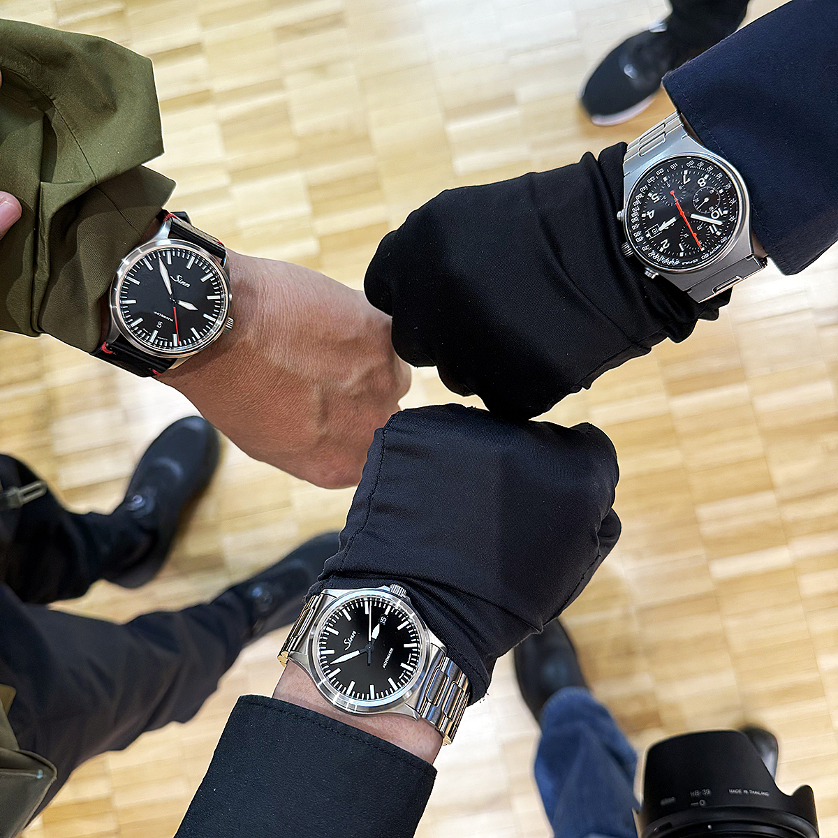 ベルトの調整中に他のモデルも見たいとの事で836をご試着。シンプルで見やすいデザインの中にテギメントや高い対磁性能を誇っていることをお伝えしたところ「これも買います」と一応奥様の許可をとりながらこちらも決定に!(奥様は若干呆れ顔)一度のご来店で2本の大人買い。ありがとうございます!