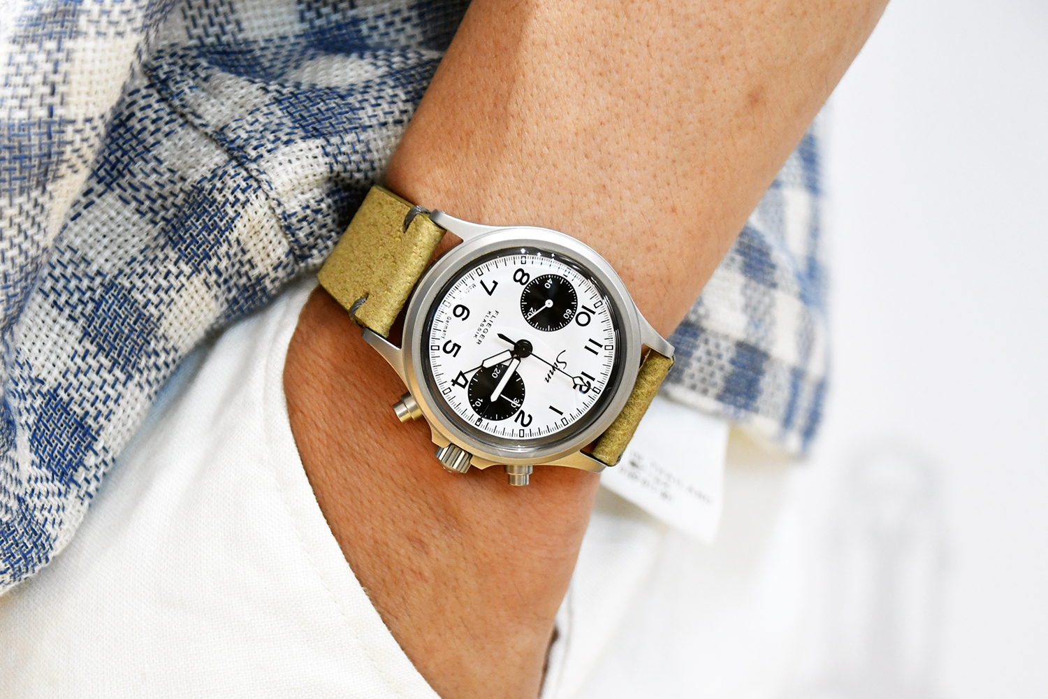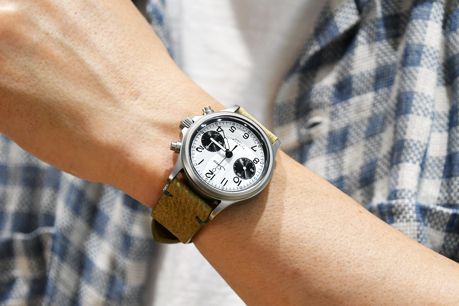 さわやかなブルーxホワイトのシャツにマットホワイトの文字盤の356がお似合いです✨