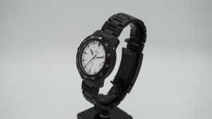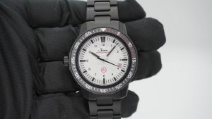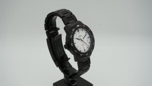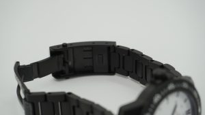 このため、一般的なブラックメッキの時計とは次元の異なる耐久性を有しており、精悍な黒が長く続きます。