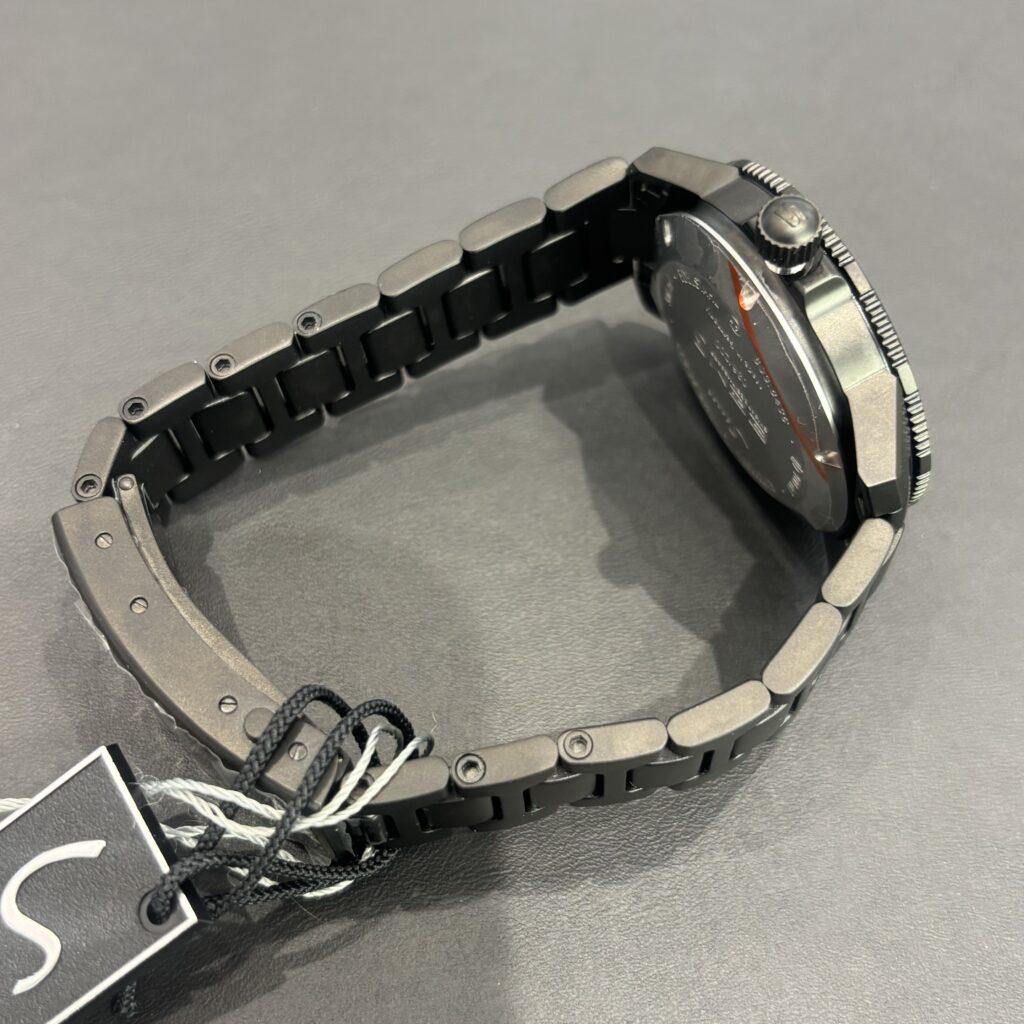 ケース、ベゼル、そしてブレスレット(オプション)に至るまで、全身が漆黒のブラックで覆われています。