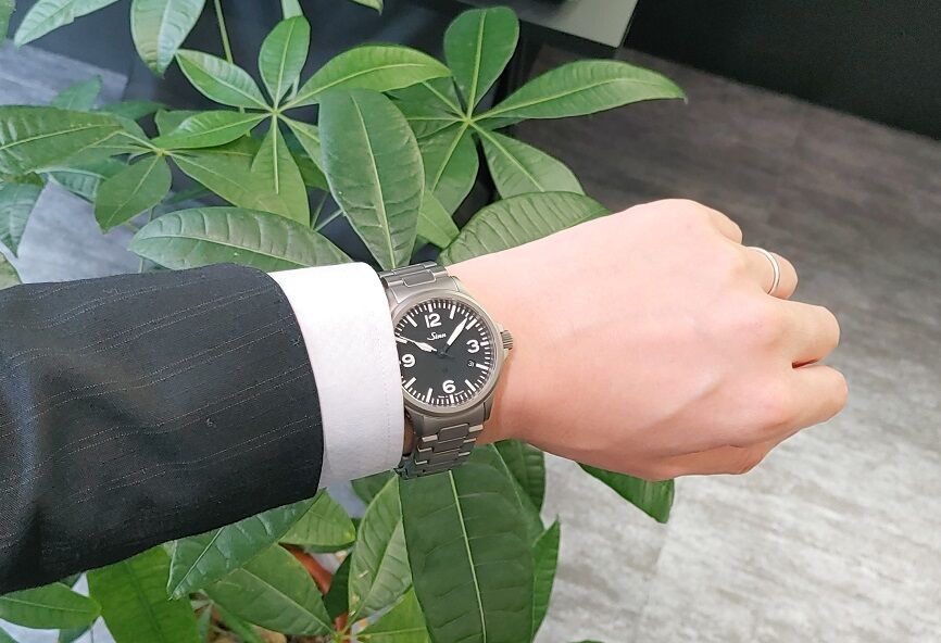 戦闘機のコックピット内に備え付けられている「コックピットクロック」のデザインを採用した、ジンを代表するパイロットウォッチです。