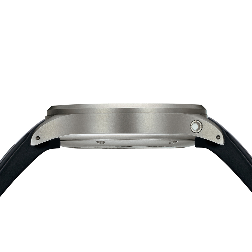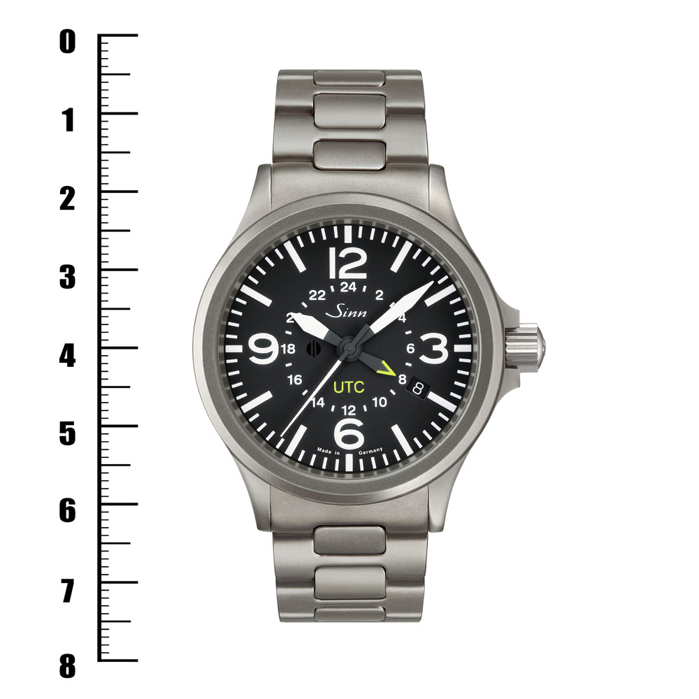 コックピット内のパイロットにとって最も重要な、極限状態でも瞬時の視認性を高めるため3・6・9・12のインデックスを強調した文字盤に、UTC(デュアルタイム)機能を付加しています。テギメント加工されたステンレスケースを使用することで、セラミックと同等の高硬度を実現した耐傷性能を持つハイスペックモデルです。このシリーズの特徴のひとつであるマグネチック・フィールド・プロテクションによる驚異の80,000A/mという耐磁性も備えています。さらにジン社独自の除湿機構であるArドライテクノロジーも搭載しています。